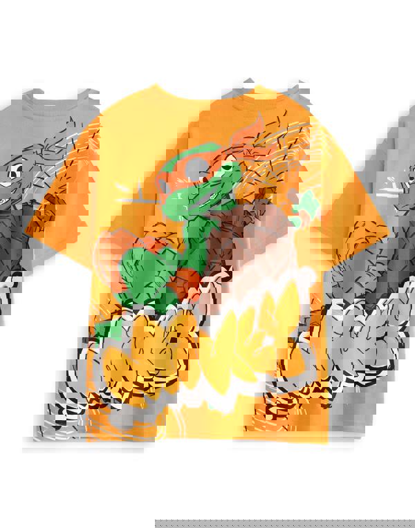 Introduce your little one to the exciting world of the Teenage Mutant Ninja Turtles with this vibrant orange graphic tee featuring Michelangelo, the fun-loving turtle known for his love of pizza and adventure