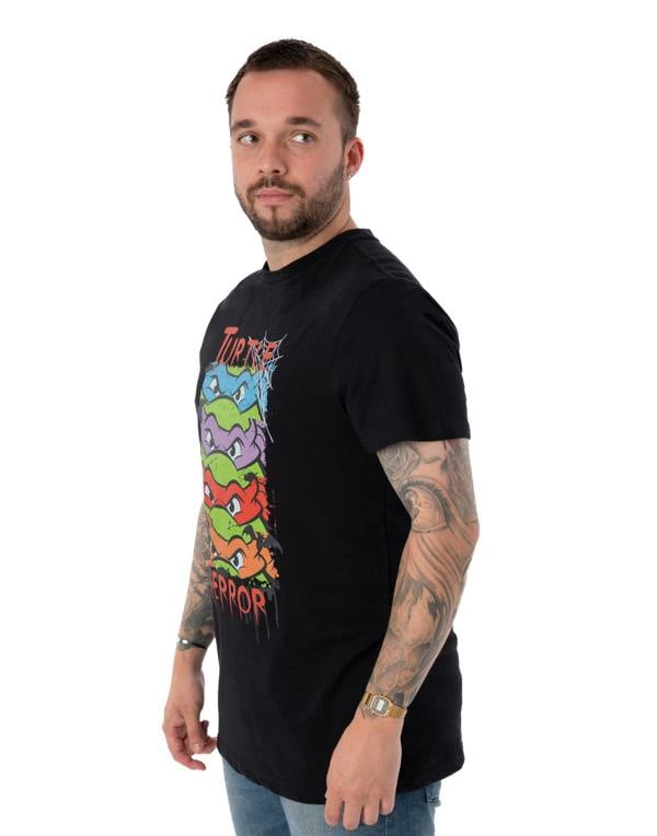 Embrace Halloween excitement while reliving the magic of the Turtles with the Teenage Mutant Ninja Turtles 'Turtle Terror' Men's Black Short-Sleeved T-Shirt - a must-have for both fans and Halloween enthusiasts seeking adventure