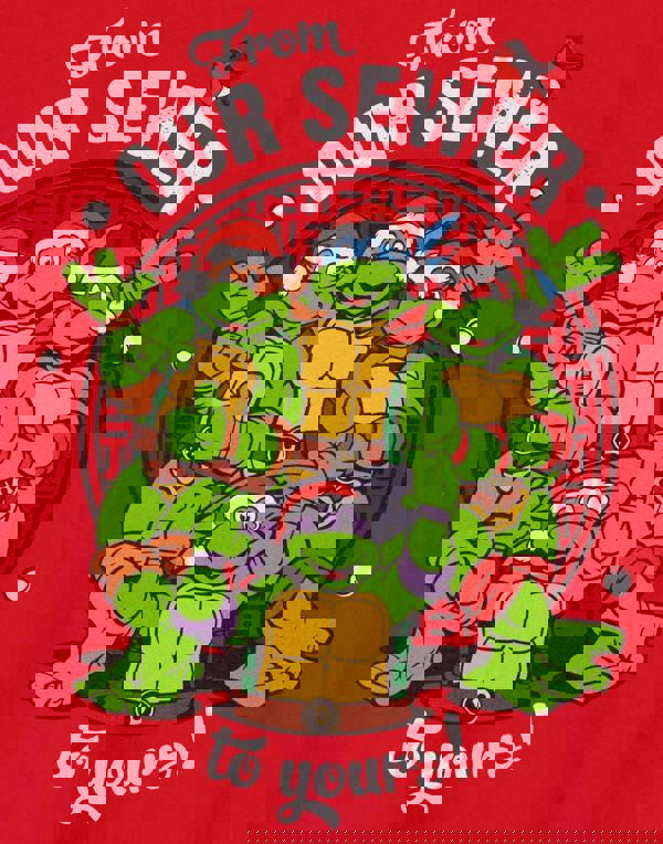 Get into the holiday spirit with our Teenage Mutant Ninja Turtle "From Our Sewer To Yours" Christmas T-Shirt in vibrant red! This festive TMNT graphic tee is the perfect addition to your holiday wardrobe or a great gift for any TMNT fan