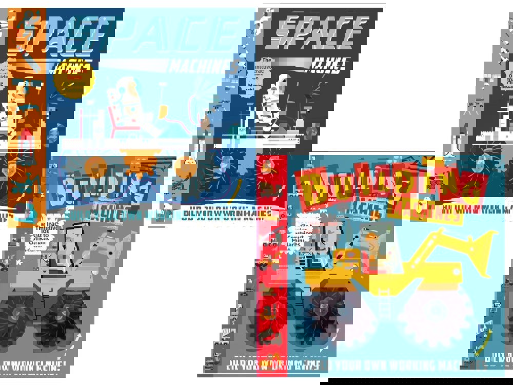 Space Machines is an interactive guide to machines used in space, with full step-by-step instructions for creating nine different builds with working parts. Building Machines focuses on construction-site vehicles, using fact-filled spreads and colourful, humorous illustrations to explain mechanics and roles on site before inviting readers to construct mini models.