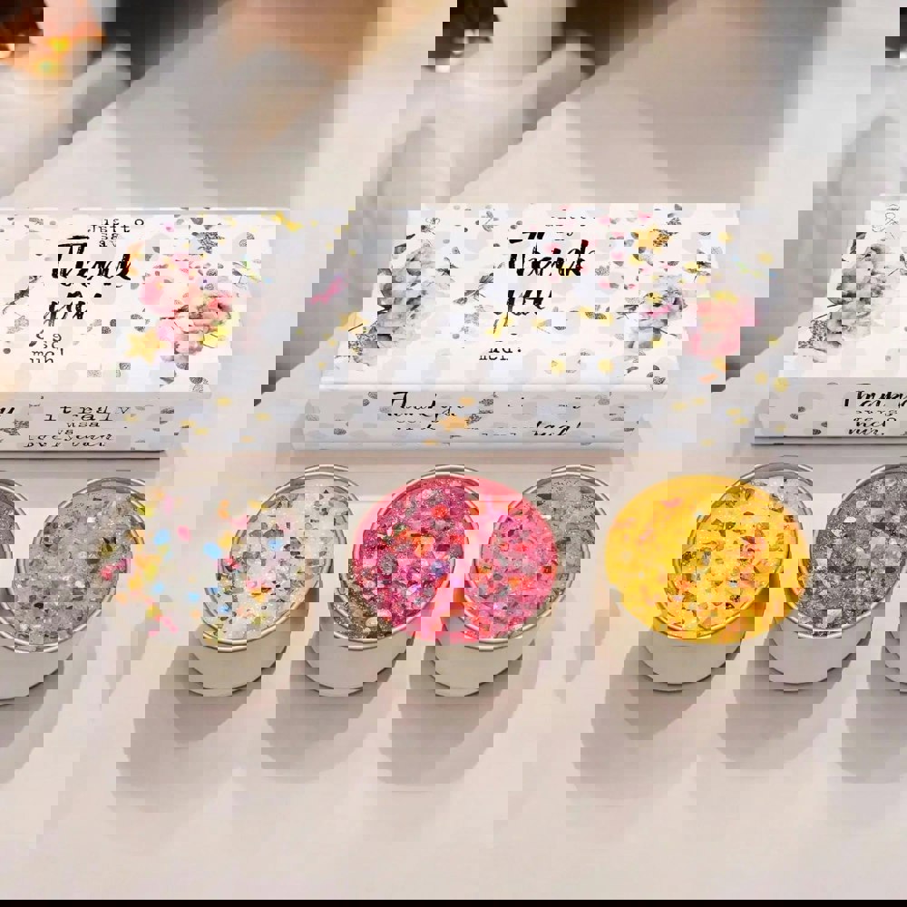 Show your appreciation with our luxurious Thank You Candles Trio Set, the perfect gift to express gratitude for any occasion. This exquisite set features three uniquely scented candles, each offering approximately 30 hours of burn time to fill any space with delightful fragrance. Whether you're saying thank you to a friend, family member, or colleague, this thoughtful gift provides a lasting reminder of your appreciation and creates a wonderfully inviting atmosphere.