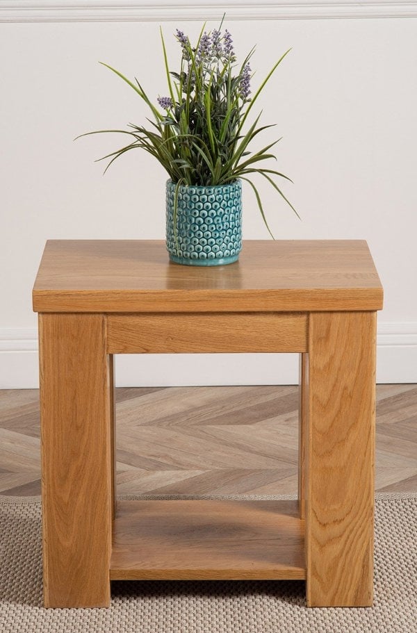 With its clean straight lines, thick cut table top and chunky robust square set legs, the Dakota oak lamp side table will happily be the centerpiece in any living room. The minimalist design is very much in keeping with the look of today but will work in perfect harmony with both modern and traditional homes.