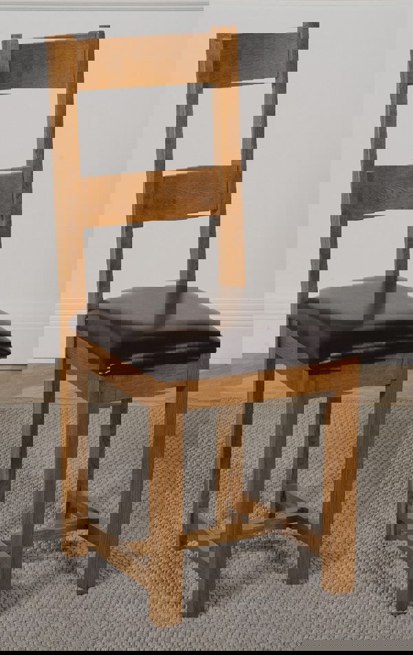 With their high back design, comfortable cushioned premium bonded leather seat and braced solid oak legs the Lincoln wooden dining chairs are ideal for entertaining guests and robust for everyday use.