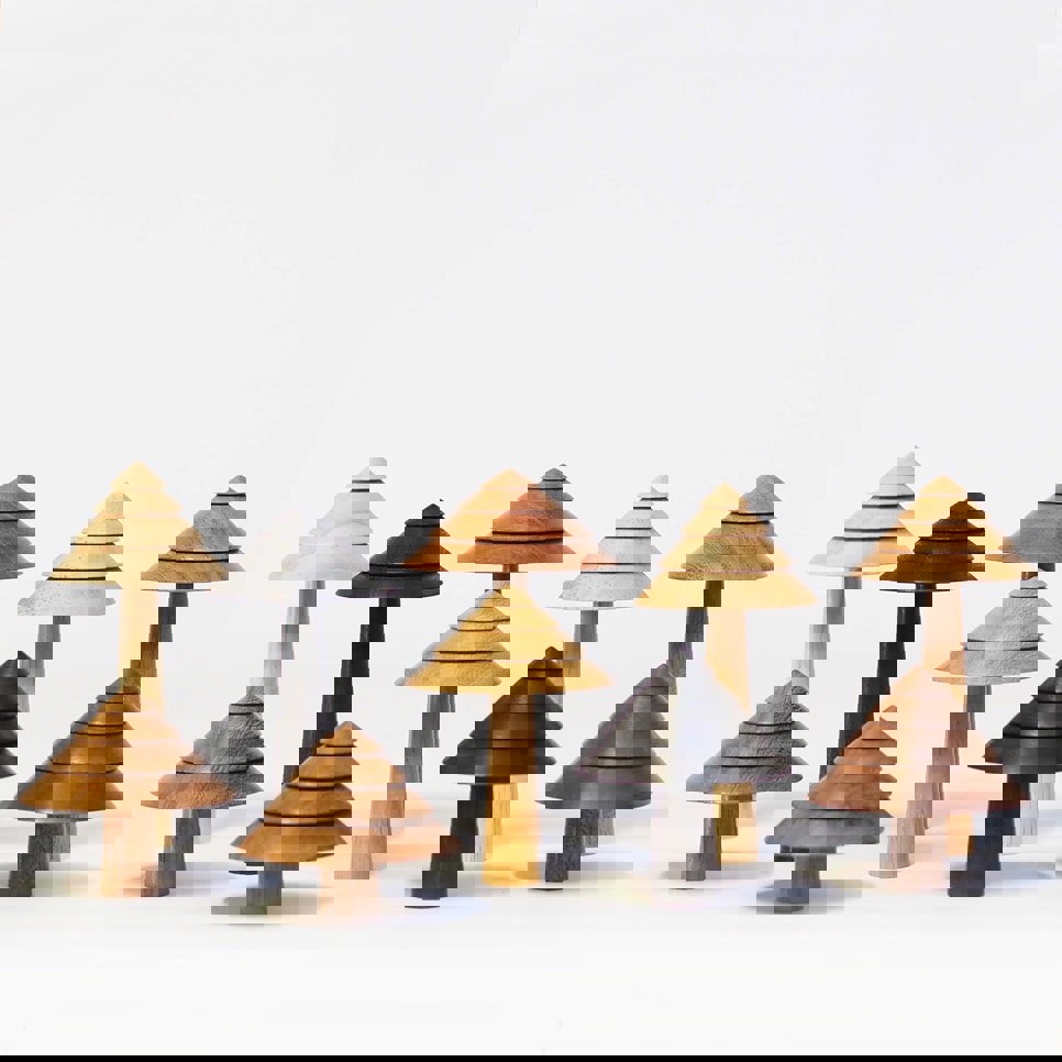 A set of ten hand-turned wooden Trees. We love the way our Shrubs and Amazon Trees look together in a group and we know you will too. We'll pick out a great selection of wood types and tones for you.
