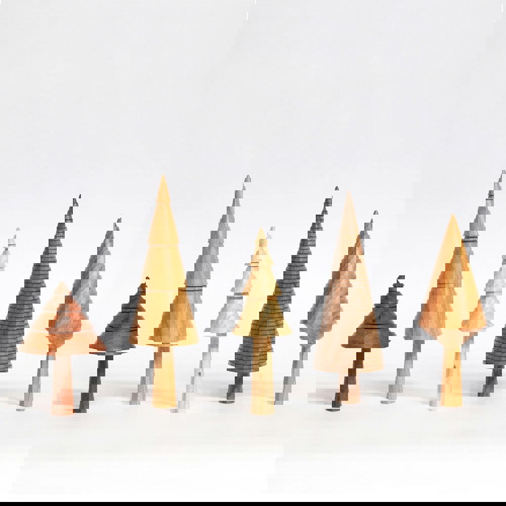 Sizing ~ The size of the Trees varies, as each one is unique and individually hand turned. The Trees in the Pointy Pines Woodland Set will measure approximately between 10-14cm tall.