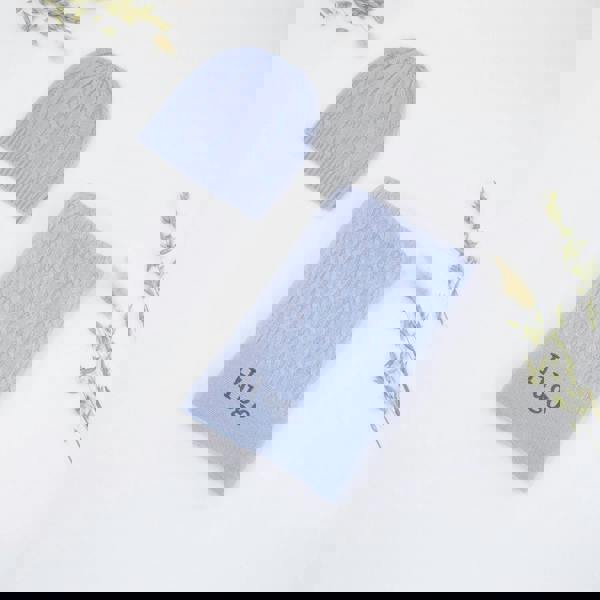 From The Baby Gifting Company, the Classic Cashmere Baby Gift Set is a considered newborn gift, pairing a classic cable knit baby blanket with a matching beanie in cornflower blue. Designed to welcome a new arrival, it brings a coordinated look that feels special for early days at home and thoughtful gifting occasions.