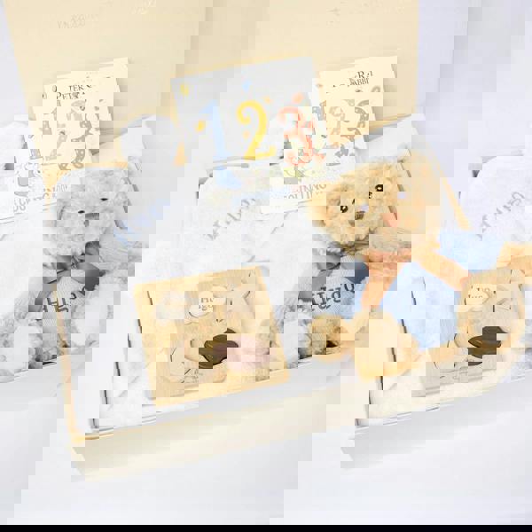 At the heart of the set is an out-of-this-world Cosmic Puzzle for quiet moments before bed, followed by a soft and fluffy cotton hooded towel finished with adorable ears for post-bath snuggles. A teddy bear companion completes the routine, dressed in a cream jumper personalised with a name on the front, ready to join in at bedtime. To wind down, the set also includes a bedtime book featuring Peter Rabbit and friends in a counting story.