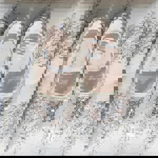 Inside, you’ll find the Aruna Seth Ivory Chantilly Lace Odette Baby Shoes, paired with one of The Baby Gifting Company’s best-selling super soft 100% organic cotton (GOTS) blankets. A classic teddy bear adds a comforting touch, while a keepsake natural hairbrush completes the set with a practical item intended to be held on to.