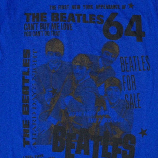 Official licensed The Beatles Unisex T-Shirt featuring the '1964' design motif. High quality blue unisex t-shirt featuring front printed motifs. Comes in a wide range of sizes from XX-Small through XX-Large, subject to availability.