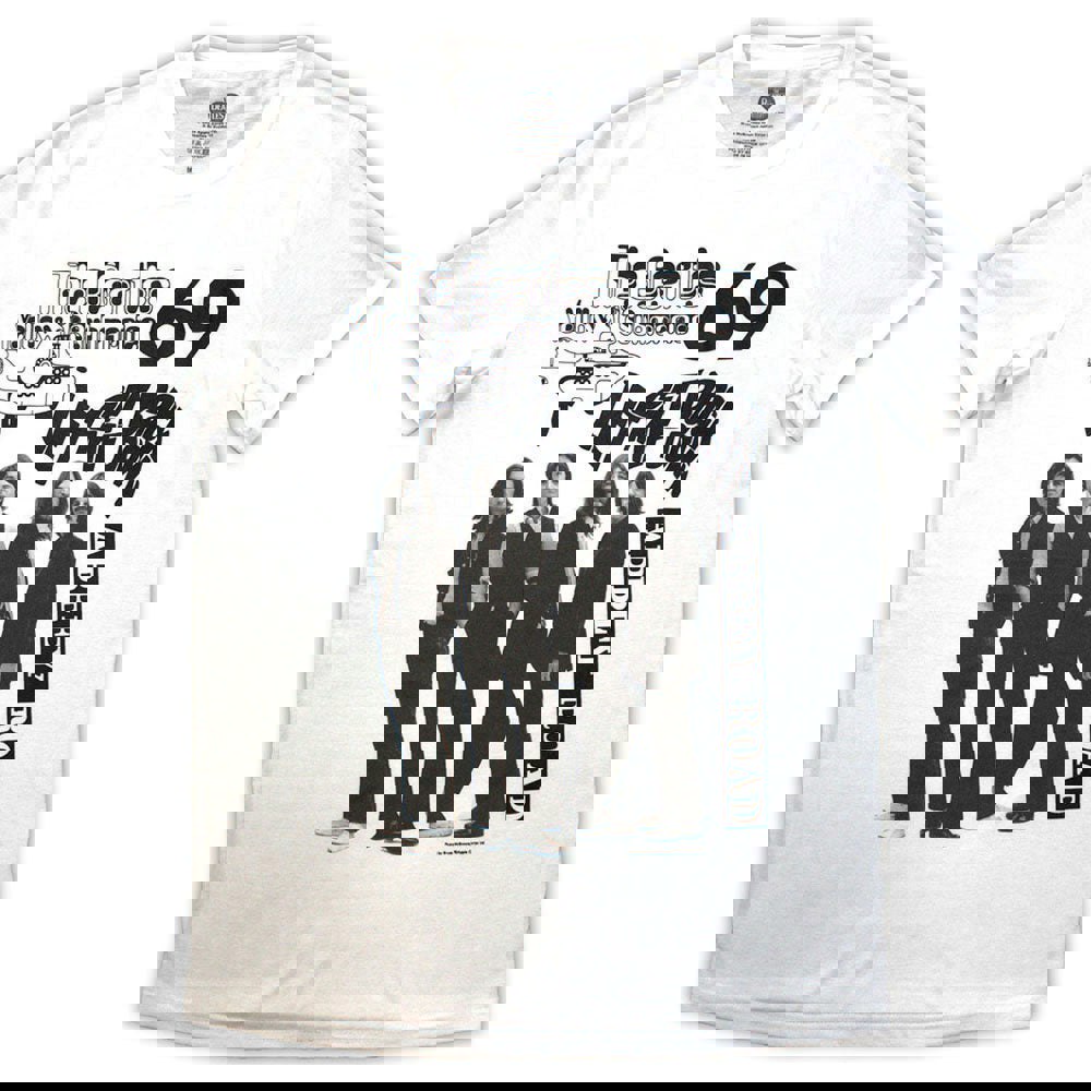 Official licensed The Beatles Unisex T-Shirt featuring the '1969' design motif. High quality white unisex t-shirt featuring front printed motifs. Comes in a wide range of sizes from XX-Small through XX-Large, subject to availability.
