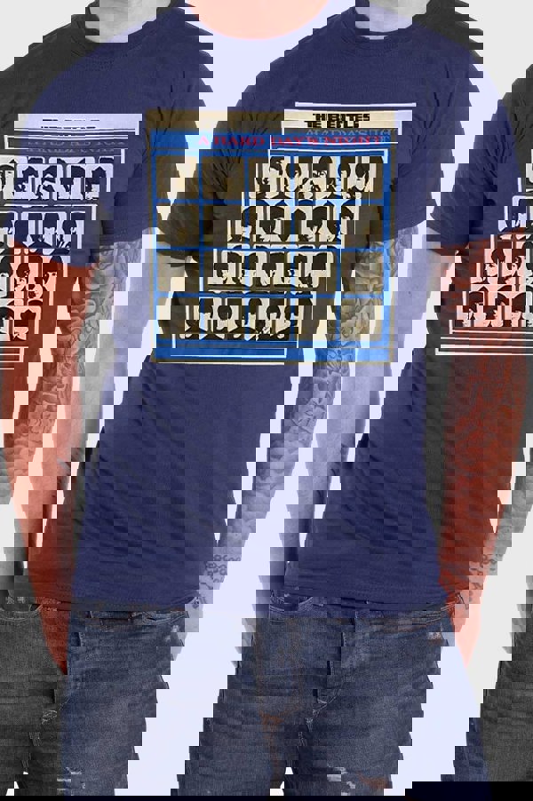 An official licensed The Beatles Unisex T-Shirt featuring the 'A Hard Day's Night Album Cover' design motif. This high quality T-Shirt is available in a denim blue colourway. High quality soft-style cotton unisex t-shirt featuring front printing. Comes in a wide range of sizes from Small through XX-Large, subject to availability.