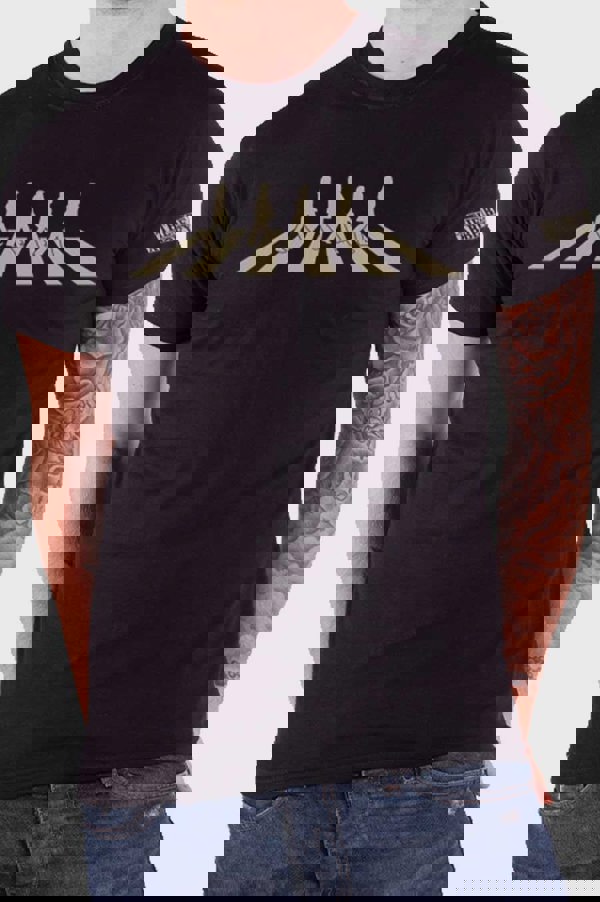 An official licensed unisex Cotton Tee featuring The Beatles 'Abbey Road Silhouette' design motif. This high quality t-shirt is available in a black colourway. We offer a range of sizes from Small through XX-Large, subject to stock availability.