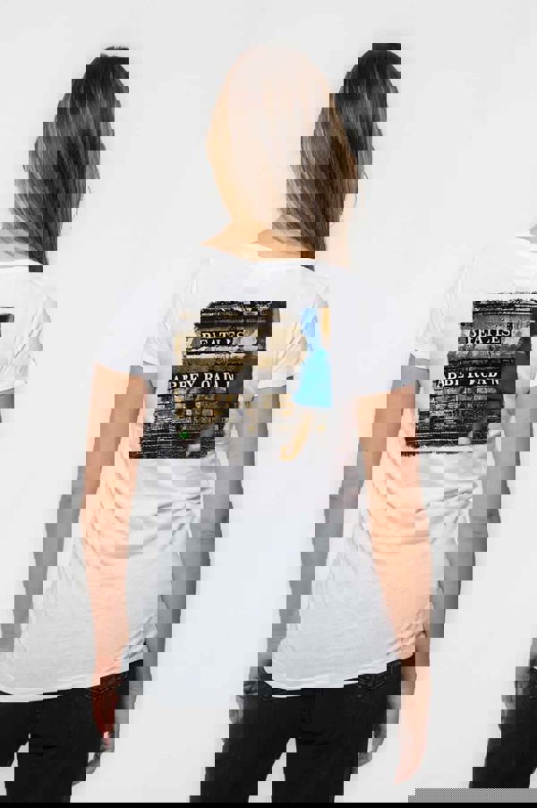 New and official band merchandise, The Beatles womens skinny fit T shirt, featuring vintage cover art from their eleventh studio album 'Abbey Road', printed on a 100% cotton short sleeve T shirt.