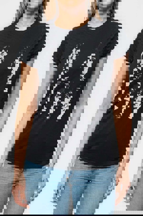 An official licensed ladies soft-style cotton Tee featuring The Beatles 'Back in the USSR' design motif. This high quality t-shirt is available in a black colourway. We offer a range of sizes from Small through XX-Large, subject to stock availability.