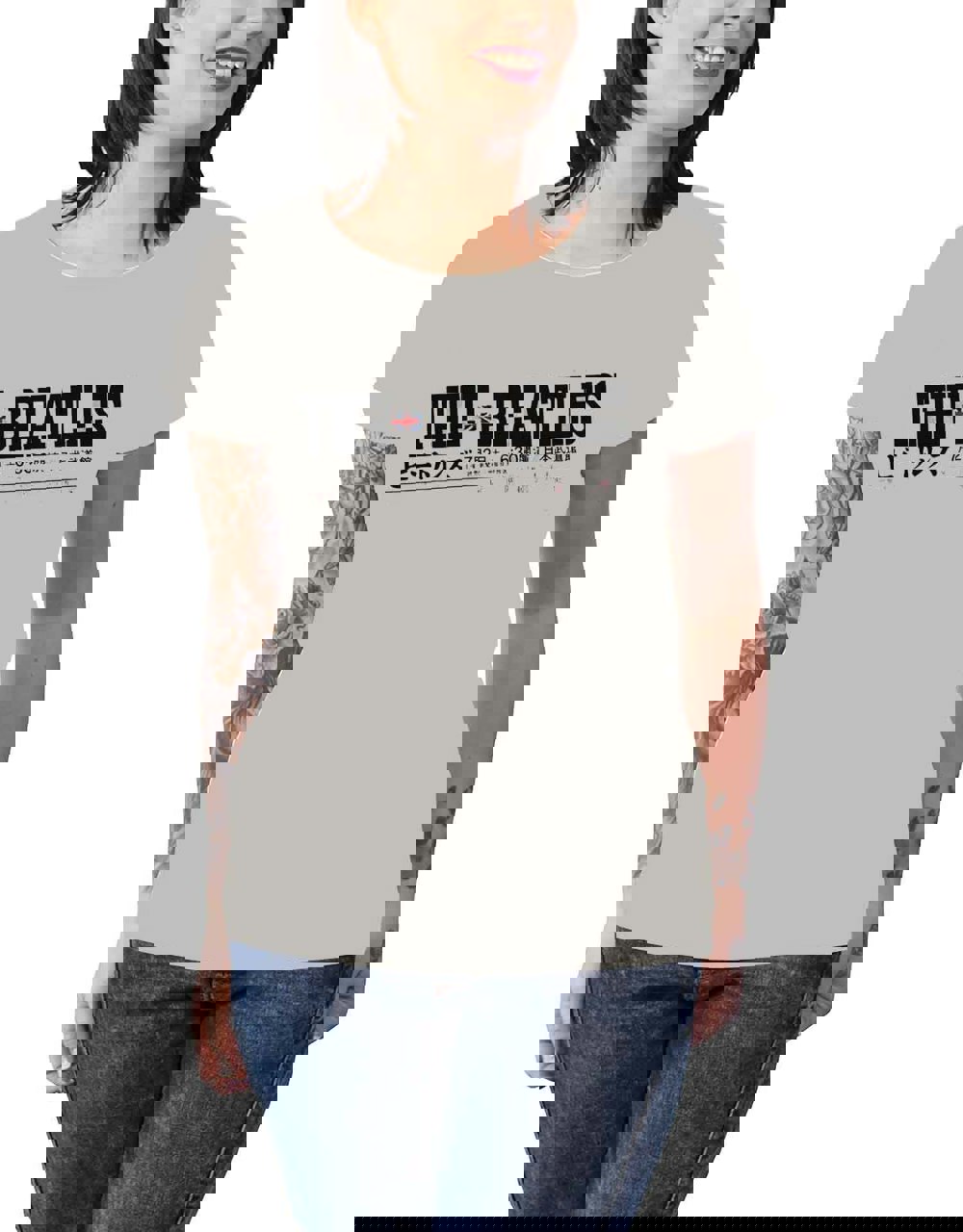 An official licensed ladies soft-style cotton Tee featuring The Beatles 'Budokan Set List' design motif. This high quality t-shirt is available in a grey colourway. We offer a range of sizes from Small through XX-Large, subject to stock availability.