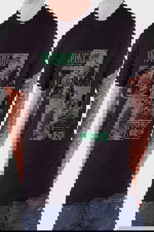 An official licensed unisex Cotton Tee featuring The Beatles 'Cavern Shots 1962. ' design motif. This high quality t-shirt is available in a black colourway. We offer a range of sizes from Small through XX-Large, subject to stock availability.