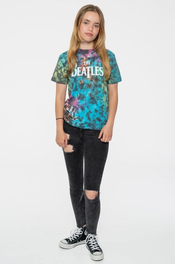 An official licensed The Beatles Kids T-Shirt featuring the 'Drop T Logo' design motif. This high quality T-Shirt is available in a grey colourway. A stunning tee featuring short sleeves, crew neck and front printing. Fashioned in eye catching dip-dye print. The t-shirt blank is manufactured using materials comprising 60% Cotton and 40% Polyester.