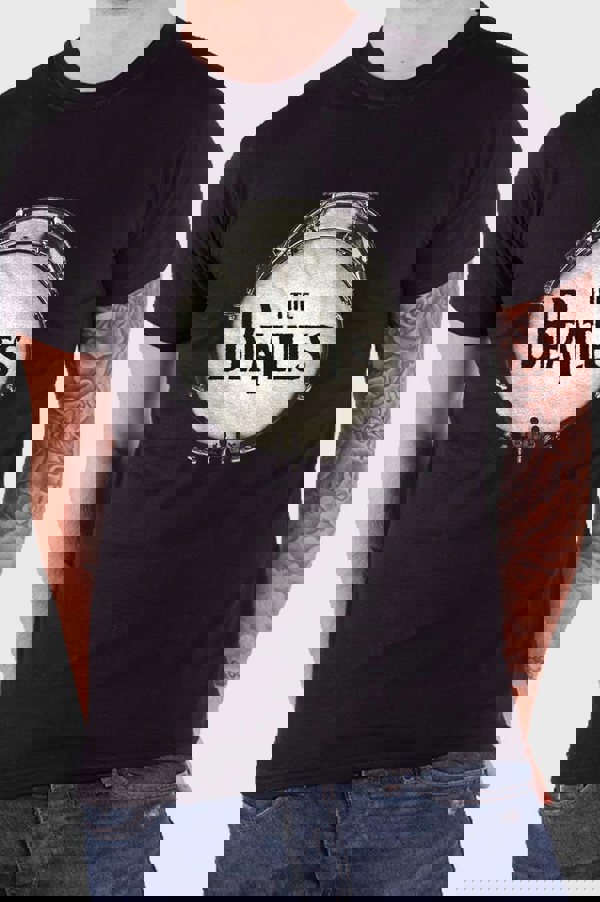An official licensed unisex soft-style cotton Fashion Tee featuring The Beatles 'Drum' design motif. This high quality t-shirt is available in a black colourway. We offer a range of sizes from Small through XX-Large, subject to stock availability.