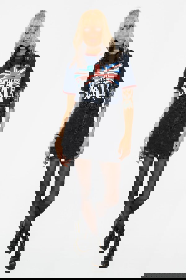 An official licensed The Beatles Unisex Ringer T-Shirt featuring the 'Drop T Logo & Vintage Flag' design motif. This high quality Ringer T-Shirt is available in a navy blue colourway. High quality soft-style cotton unisex ringer t-shirt featuring contrasting sleeve and collar detail. With front printing. Rock Off brings the classic ringer tee up to the minute, with a nod to the popular 60s classic style tee, now available in a wide range of colours and designs. Comes in a wide range of sizes from Small through XX-Large, subject to availability.