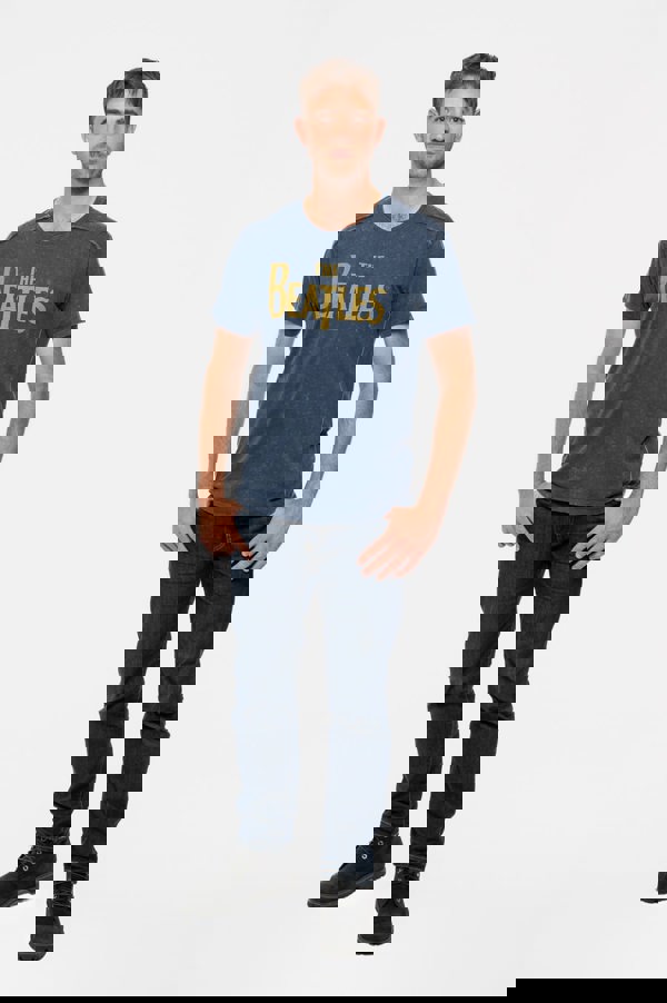 An official licensed Tee featuring the 'Drop T Logo' design motif. This high quality Tee is available in a navy blue colourway. crew neck t-shirt with snow washed finish, raw edge panel, contrast chain stitch and print detail on chest. Resulting in a vintage, retro look. Comes in a wide range of sizes from Small through XX-Large, subject to availability.