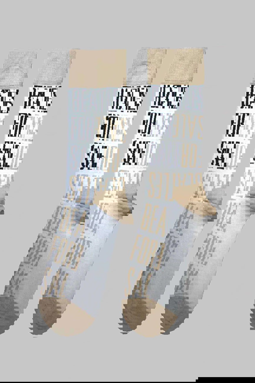 Official licensed The Beatles Ankle Socks featuring the 'For Sale Text Repeat' design motif. High quality Ankle Socks available in a white colourway. High quality 86% cotton, 12% polyamide, 2% elastane ankle socks featuring an all-over pattern and cotton rich. These woven socks are guaranteed to stand out in the crowd.