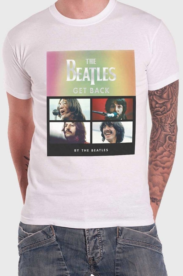 An official licensed The Beatles Unisex T-Shirt featuring the 'Album Faces Gradient' design motif. This high quality T-Shirt is available in a white colourway. Classic fit short sleeved soft-style cotton tee with front printing. Features "Silvered Printing" to logo. Comes in a wide range of sizes from Small through XX-Large, subject to availability.