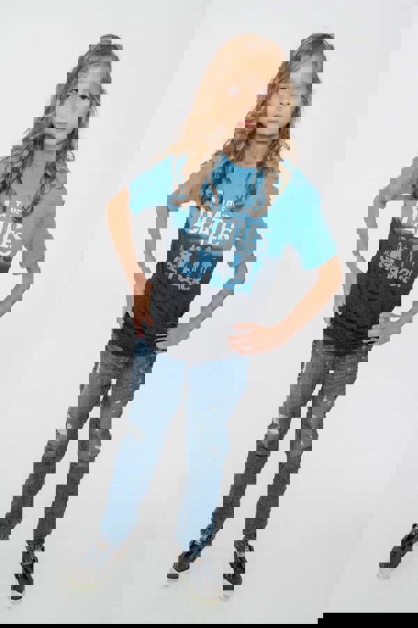 An official licensed The Beatles Kids T-Shirt featuring the 'Get Back' design motif. This high quality T-Shirt is available in a blue colourway. A stunning tee featuring short sleeves, crew neck and front printing. Fashioned in eye catching dip-dye print. The t-shirt blank is manufactured using materials comprising 60% Cotton and 40% Polyester.