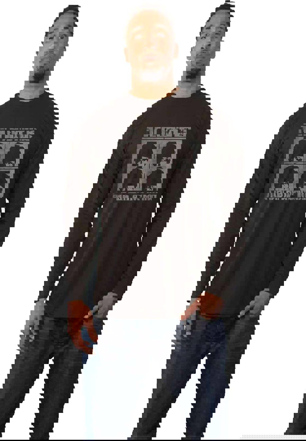 An official licensed The Beatles Unisex Long Sleeve T-Shirt featuring the 'Hard Days Night' design motif. This high quality Long Sleeve T-Shirt is available in a black colourway. High quality soft-style cotton unisex long sleeved tee shirt, ideal for those cooler months. Features front & back printing for extra impact. Comes in a wide range of sizes from Small through XX-Large, subject to availability.