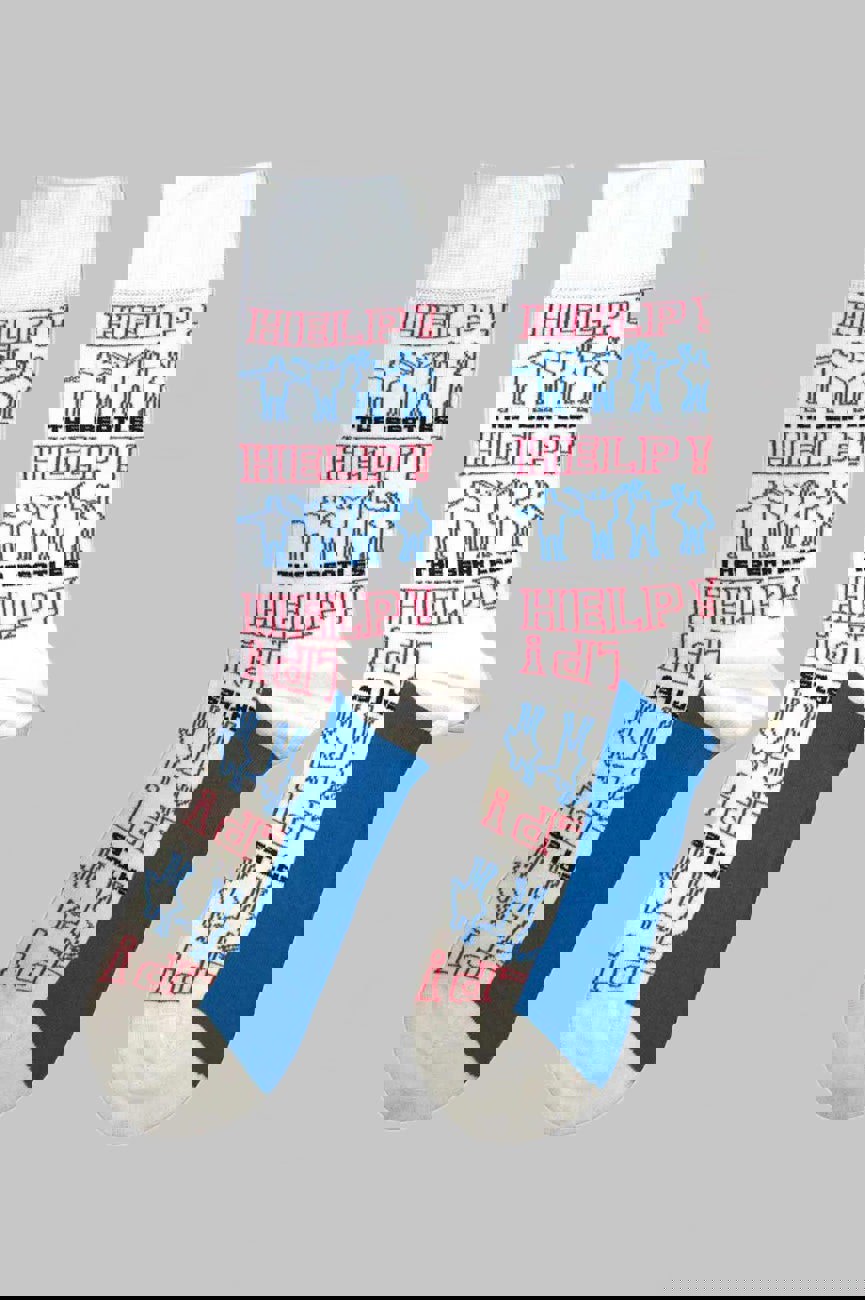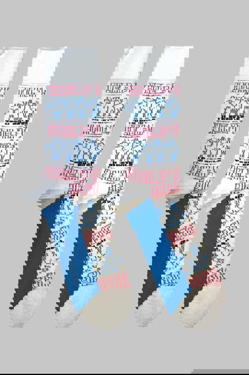 Official licensed The Beatles Ankle Socks featuring the 'Help! Outlines Repeat' design motif. High quality Ankle Socks available in a white colourway. High quality 86% cotton, 12% polyamide, 2% elastane ankle socks featuring an all-over pattern and cotton rich. These woven socks are guaranteed to stand out in the crowd.