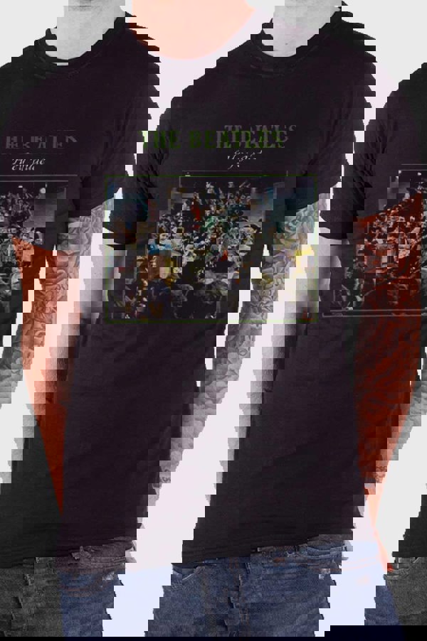 An official licensed unisex soft-style cotton Tee featuring The Beatles 'Hey Jude Live' design motif. This high quality t-shirt is available in a black colourway. Available in a wide range of sizes from small through xx-large. Subject to availability.