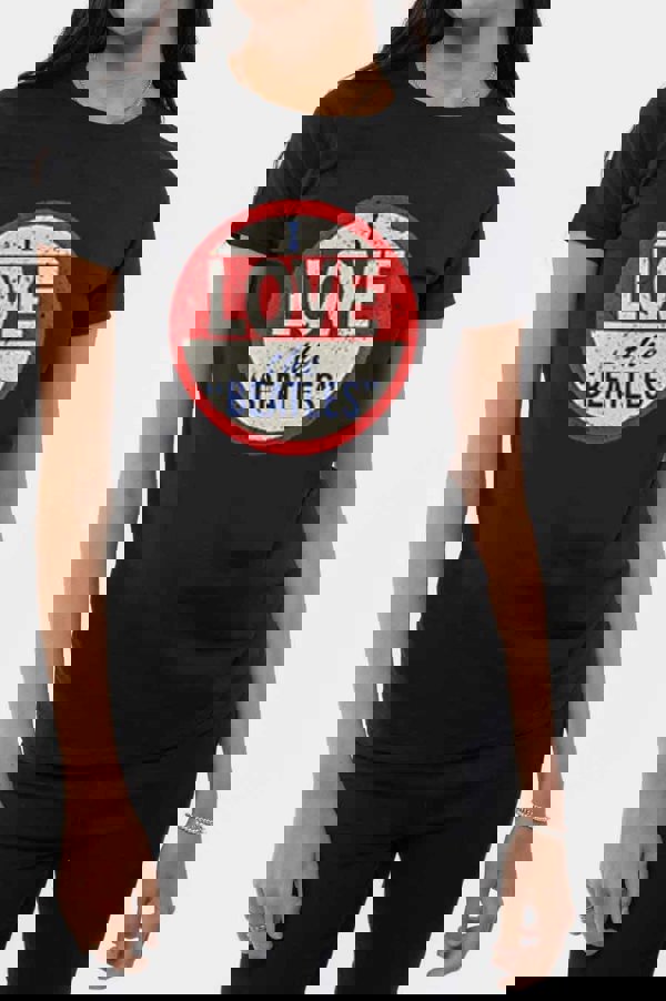 An official licensed ladies soft-style cotton Premium Tee featuring The Beatles 'I Love The Beatles' design motif. This high quality t-shirt is available in a black colourway. We offer a range of sizes from Small through XX-Large, subject to stock availability.