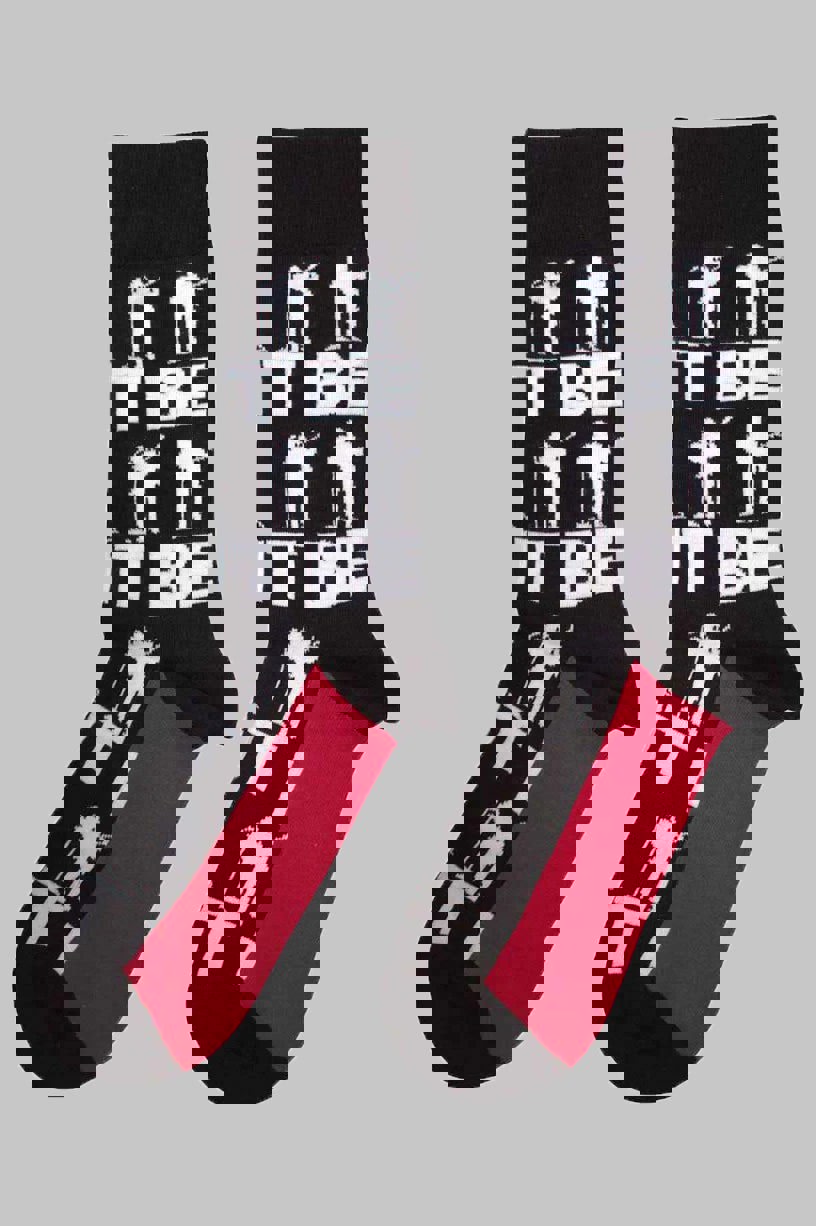Official licensed The Beatles Unisex Ankle Socks featuring the 'Let It Be Silhouettes Repeat' design motif. High quality Ankle Socks available in a black colourway. High quality 86% cotton, 12% polyamide, 2% elastane unisex ankle socks featuring an all-over pattern and cotton rich. These woven socks are guaranteed to stand out in the crowd.