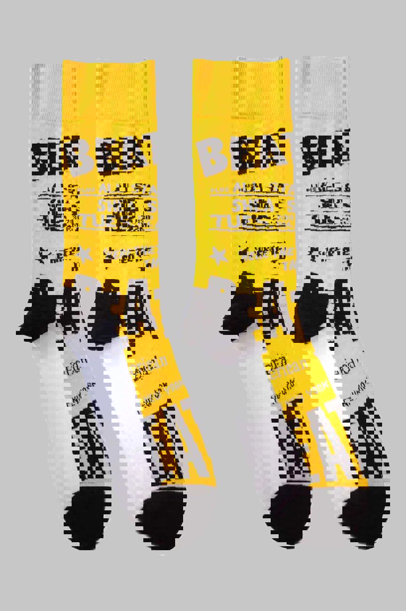 Official licensed The Beatles Unisex Ankle Socks featuring the 'USA' design motif. High quality Ankle Socks available in a yellow colourway. High quality 86% cotton, 12% polyamide, 2% elastane unisex ankle socks featuring an all-over pattern and cotton rich. These woven socks are guaranteed to stand out in the crowd.