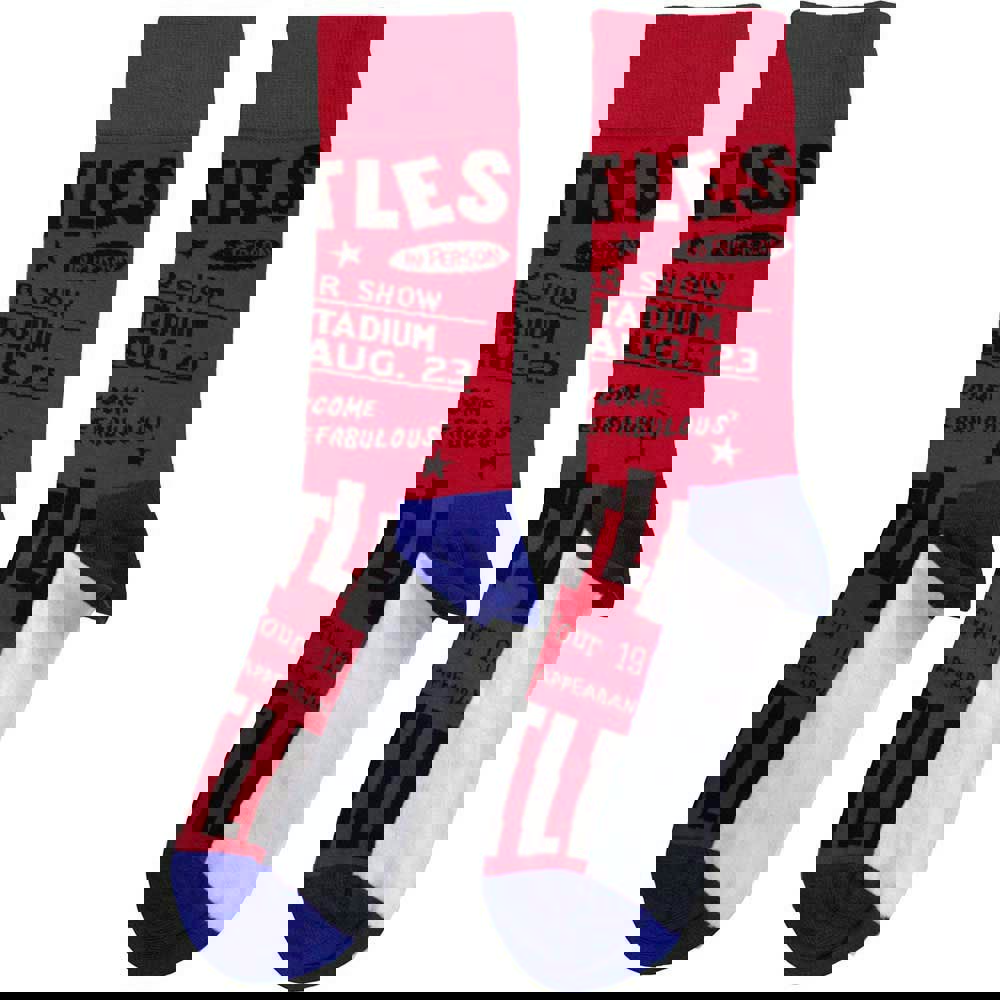 Official licensed The Beatles Unisex Ankle Socks featuring the 'USA' design motif. High quality Ankle Socks available in a red colourway. High quality 86% cotton, 12% polyamide, 2% elastane unisex ankle socks featuring an all-over pattern and cotton rich. These woven socks are guaranteed to stand out in the crowd.