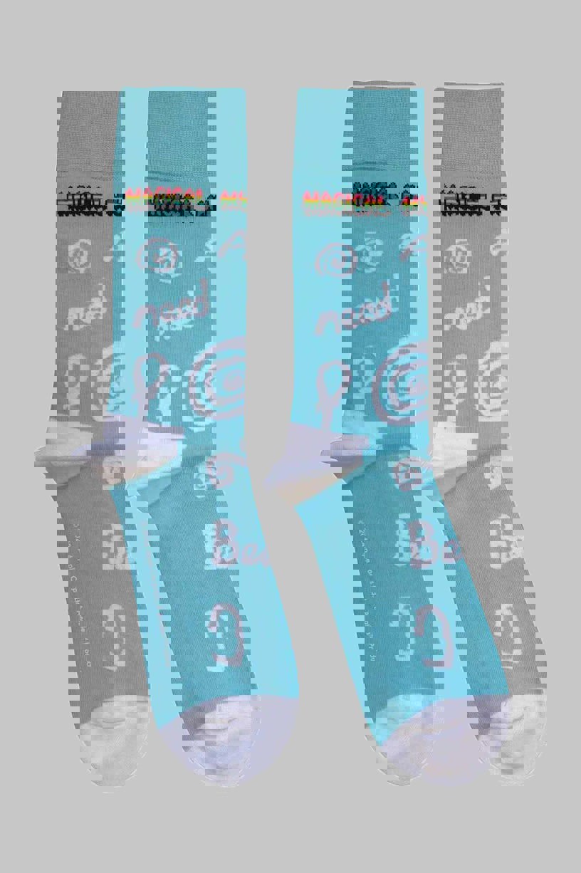 Official licensed The Beatles Ankle Socks featuring the 'Magical Mystery Tour All You Need Is Love' design motif. High quality Ankle Socks available in a light blue colourway. High quality 86% cotton, 12% polyamide, 2% elastane ankle socks featuring an all-over pattern and cotton rich. These woven socks are guaranteed to stand out in the crowd.