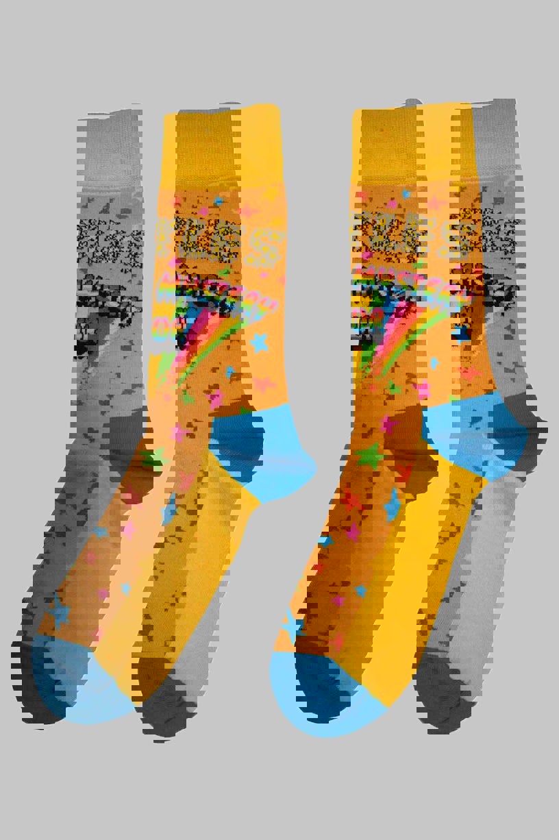 Official licensed The Beatles Unisex Ankle Socks featuring the 'Magical Mystery Tour' design motif. High quality Ankle Socks available in a orange colourway. High quality unisex ankle socks featuring an all-over pattern and cotton rich. These woven socks are guaranteed to stand out in the crowd.