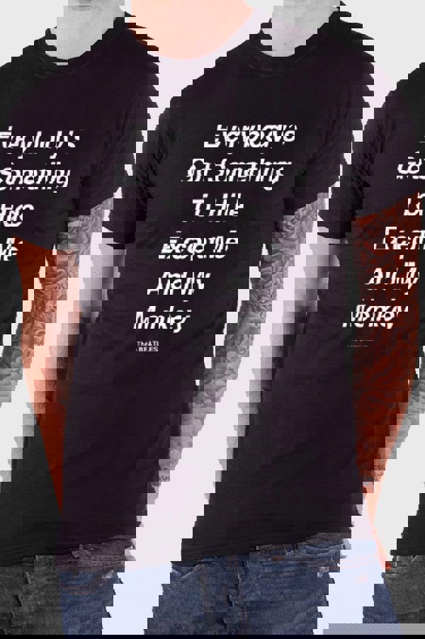 An official licensed unisex soft-style cotton Tee featuring The Beatles 'Me and My Monkey' design motif. This high quality t-shirt is available in a black colourway. Features front and back print. We offer a range of sizes from Small through XX-Large, subject to stock availability.