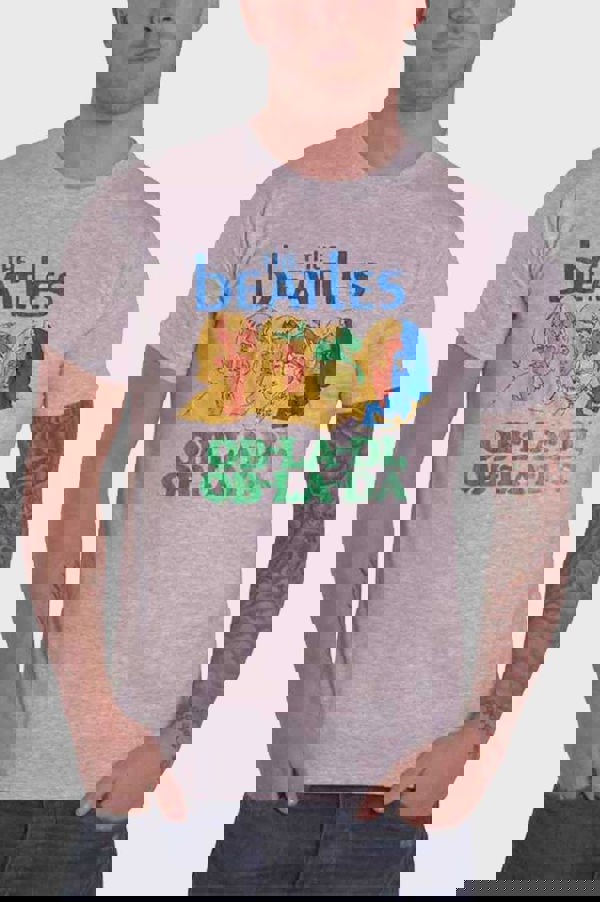 An official licensed The Beatles Unisex Tee featuring the 'Ob-La-Di' design motif. This high quality t-shirt design is available in the grey colourway. Premium soft-style cotton tee with front and back printing. Comes in a wide range of sizes from Small through XX-Large, subject to availability.