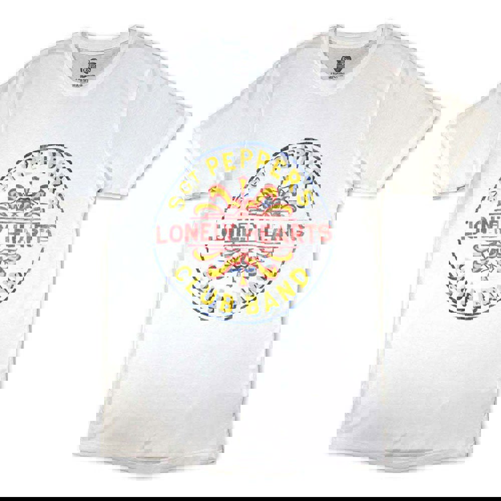 Official licensed The Beatles Unisex T-Shirt featuring the 'Painted Pepper' design motif. High quality T-Shirt available in a white colourway. High quality soft-style cotton unisex t-shirt featuring front printing. Comes in a wide range of sizes from Small through XX-Large, subject to availability.
