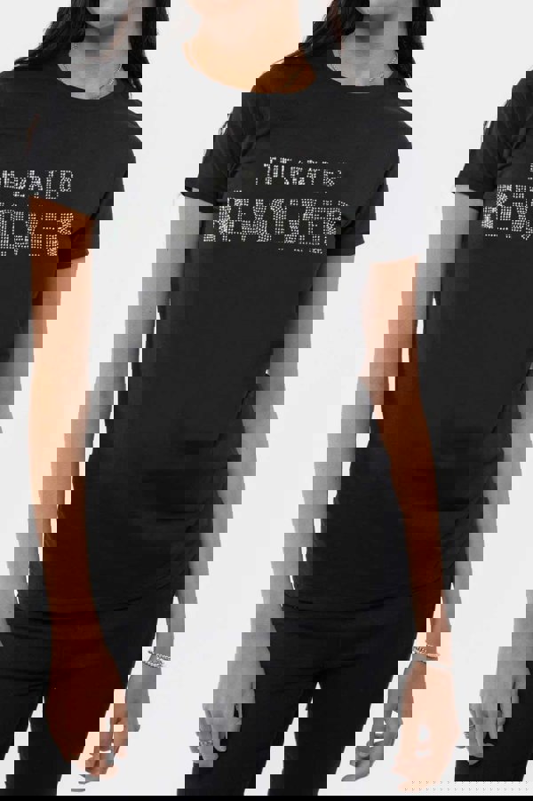 An official licensed The Beatles Ladies T-Shirt featuring the 'Revolver' design motif. This high quality T-Shirt is available in a black colourway. High quality soft-style cotton fashion tee with short sleeves, richly embellished with gorgeous diamante/rhinestone crystals. Comes in a wide range of sizes from Small through XX-Large, subject to availability.
