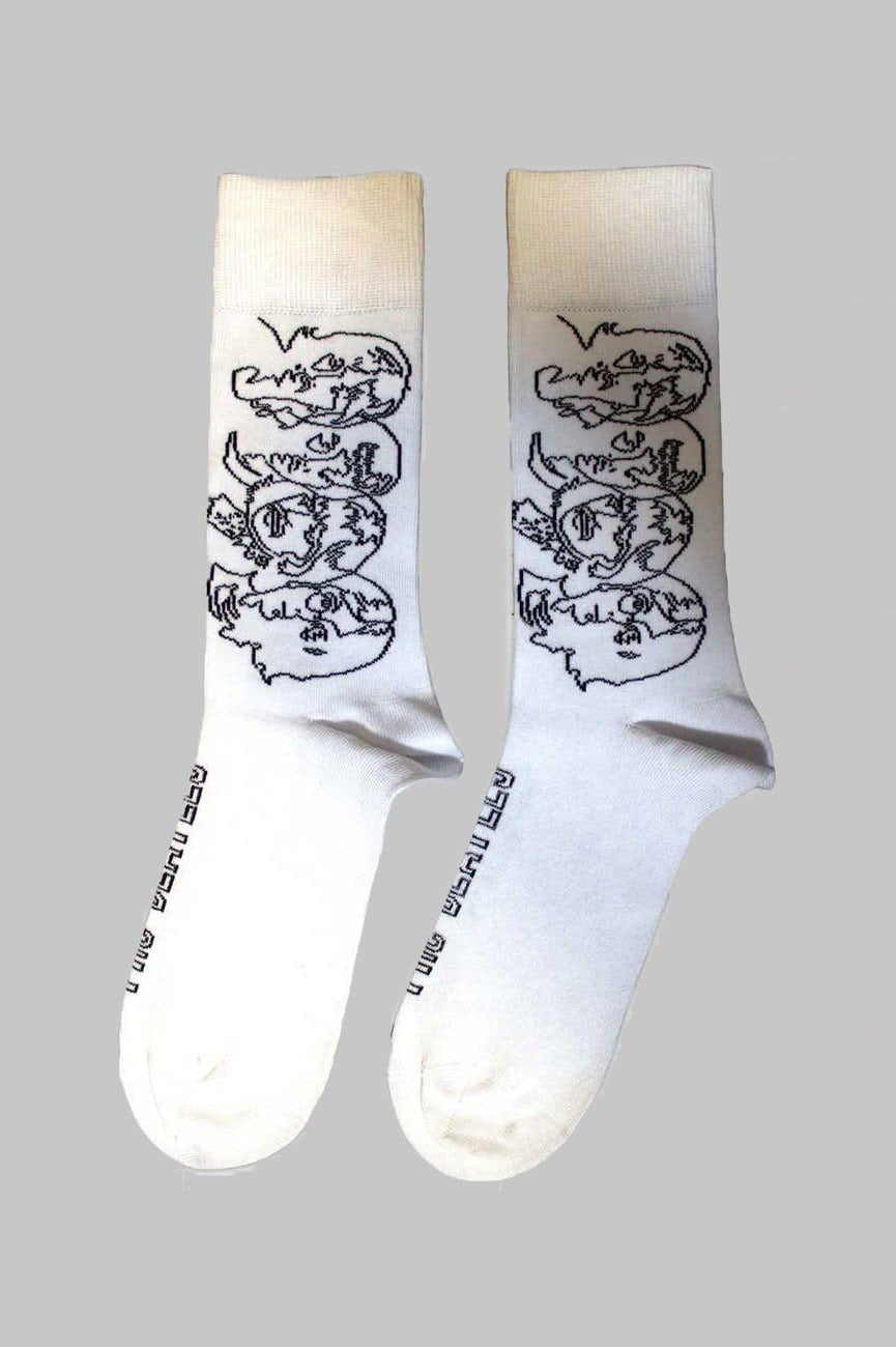 Official licensed The Beatles Unisex Ankle Socks featuring the 'White Album Faces Outlines' design motif. High quality Ankle Socks available in a white colourway. High quality unisex ankle socks featuring an all-over pattern and cotton rich. These woven socks are guaranteed to stand out in the crowd.