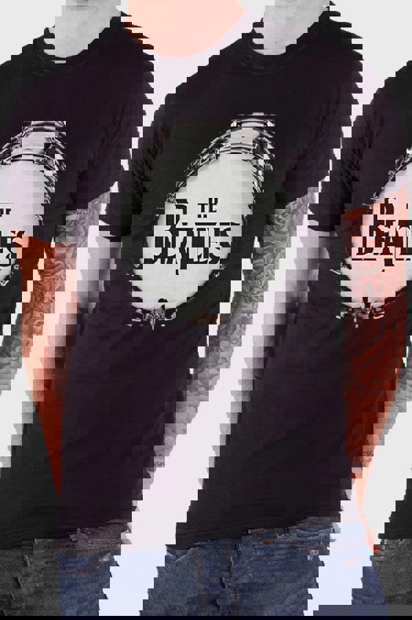 An official licensed The Beatles Unisex Tee featuring the 'Original Drum Skin' design motif. This high quality t-shirt design is available in the black colourway. Comes in a wide range of sizes from Small through XX-Large, subject to availability.
