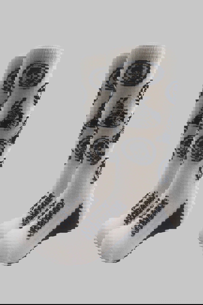 Official licensed The Beatles Ankle Socks featuring the 'Band & Meanies Monochrome' design motif. This high quality hosiery is available in a white colourway. High quality all-over pattern woven socks. UK adult shoe sizes approx. 7 - 11 (EUR Shoe size 40 - 45 and US Men's Shoe Size 8 - 12).