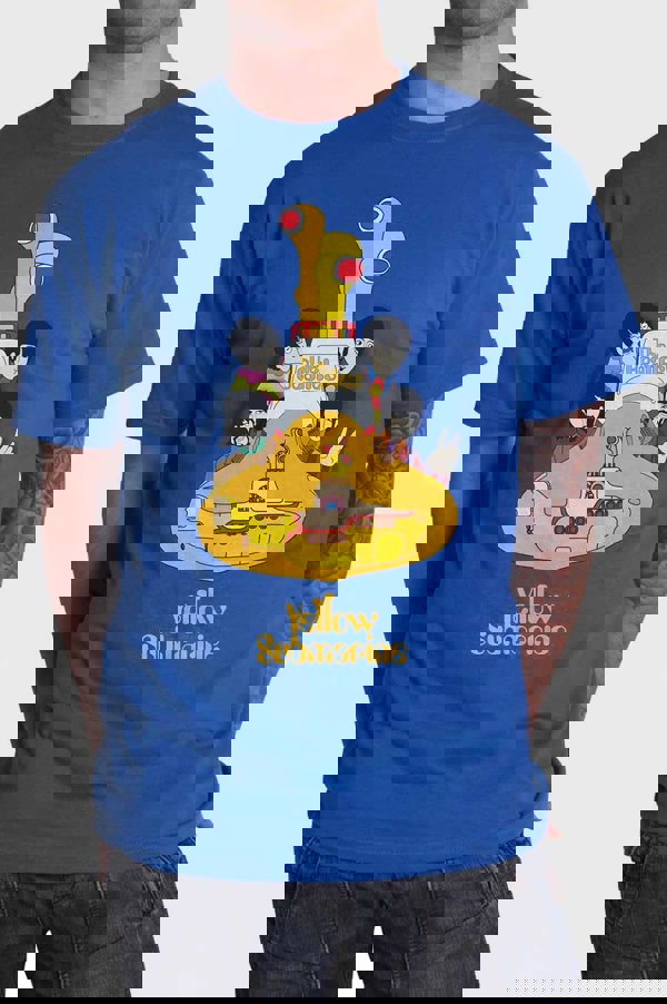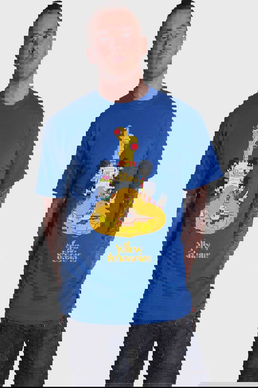 An official licensed unisex soft-style cotton Tee featuring The Beatles 'Yellow Submarine Sub Sub' design motif. This high quality t-shirt is available in a mid Iris blue colourway. Available in a wide range of sizes from small through xx-large. Subject to availability.