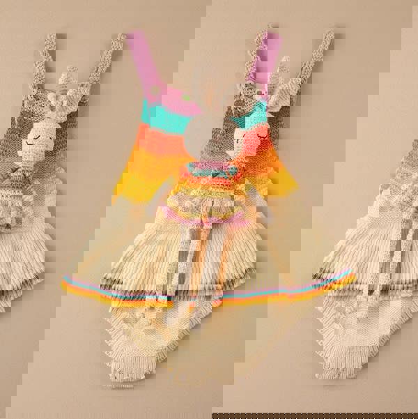 From The Bonnie Mob, the Bonnie Ballerina Bunny Crochet Toy is a soft crochet rabbit created in collaboration with PATTI OSLO. Made from 100% GOTS-certified organic cotton and finished with a rainbow stripe top, frill skirt and long floppy ears, it brings character to playtime while keeping a considered focus on materials and craftsmanship.