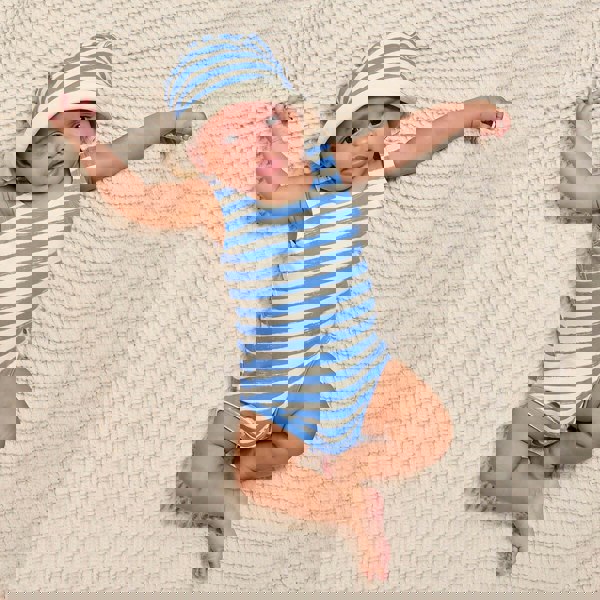 A practical accessory for baby boys, this sun hat keeps the focus on an easy-to-wear shape and a bold stripe pattern. The blue colourway makes it straightforward to pair with a range of looks while keeping the overall style crisp and classic.