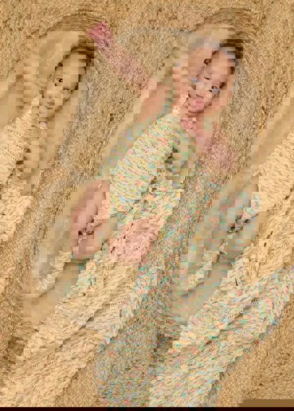 The Bonnie Mob Magic space-dye knitted baby bubble romper is a timeless knitted onesie designed to be loved and worn again and again. Made from 100% organic cotton, it has a beautifully soft feel and is created using a unique rainbow space-dyed yarn developed exclusively by the brand’s founder, Tracey.