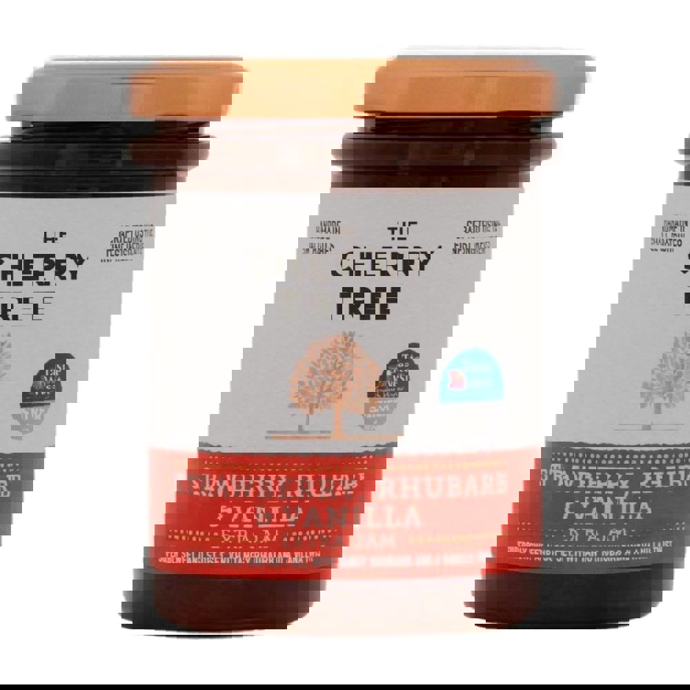 Sugar, Strawberries, Rhubarb, Gelling Agent: Fruit Pectin, Vanilla Flavouring (0. 4%), Acidity Regulator: Citric Acid