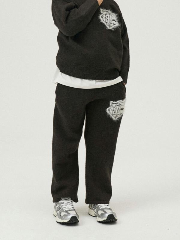 The Couture Club Kids Monogram Emblem Fluffy Knit Joggers in brown bring a fluffy knit finish to an SS2026 wardrobe. This pair suits both boys and girls and centres on a monogram emblem detail for a clear branded look.