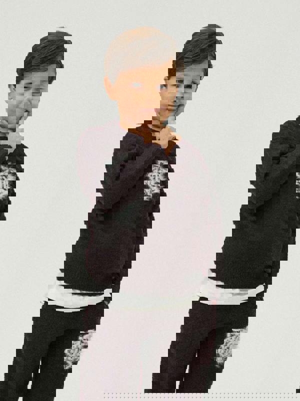The Couture Club Kids Monogram Emblem Fluffy Knit Jumper comes in brown for SS2026. A monogram emblem sits on the front, adding a clear signature detail. The fluffy knit construction gives the jumper a soft, textured look.